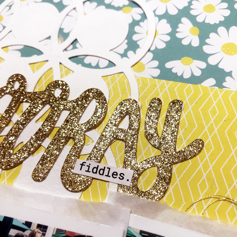I fussy cut out a few of the daisies, as well as some other flowers, (both fussy cut and from ephemera) to add a few embellishments. Of course I added some tangled thread and journaling. This was a pretty simple layout because the cut file added so much interest and texture I didn't need much else! Here are a few close ups.