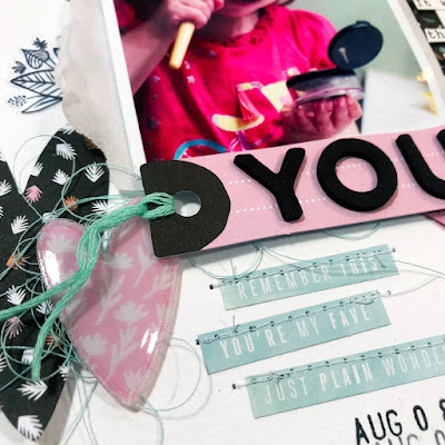 For my title I used a card that says, "Unforgettable" above the photo, and a tag below my photo houses the word "you".