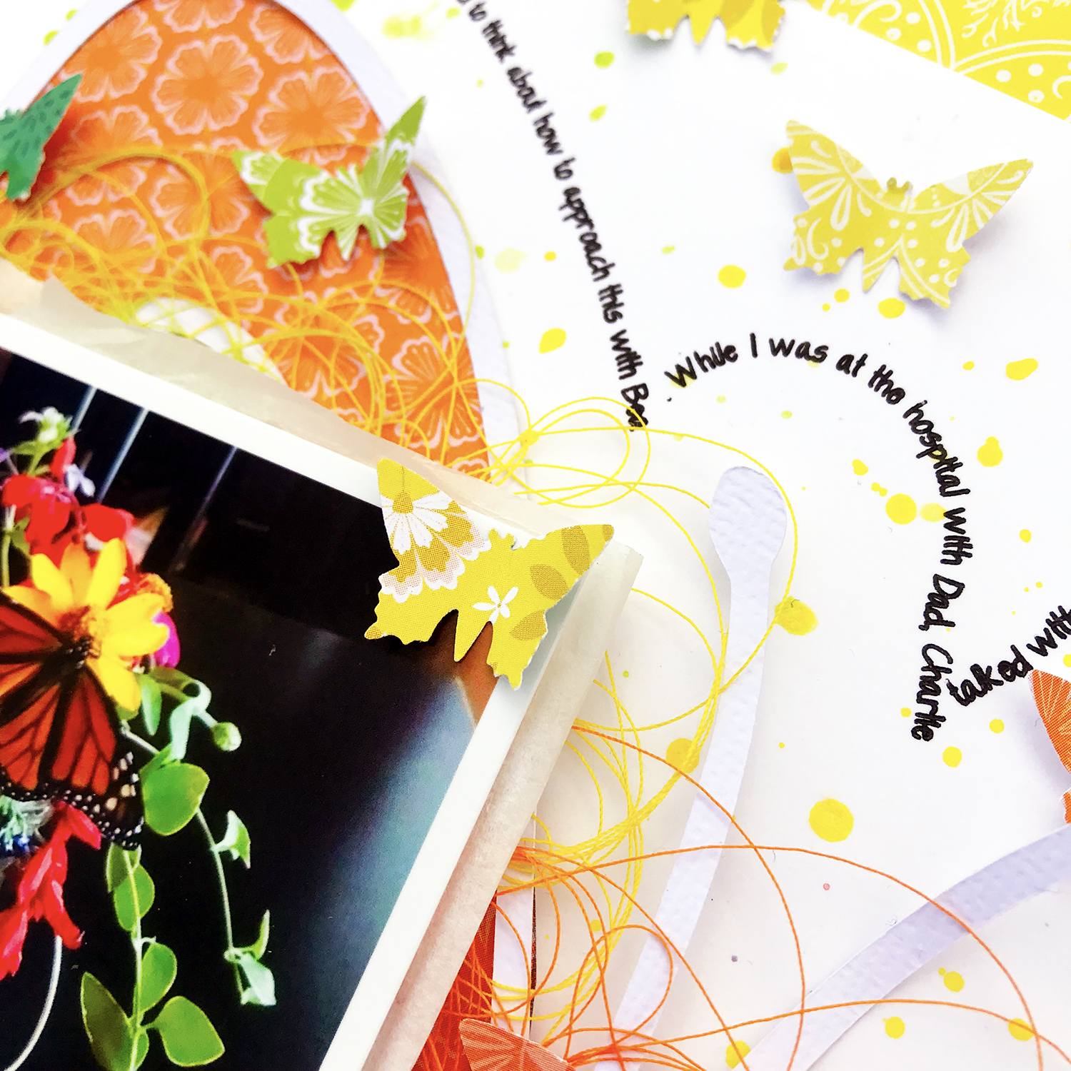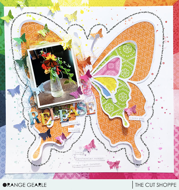 Hi! Orange Gearle here with a layout using the Butterfly Wings cut file and papers by Paige Taylor Evans. This was a super important story for me to tell, and so I needed to add quite a bit of journaling. I decided to build it right into the design. Here is my layout: